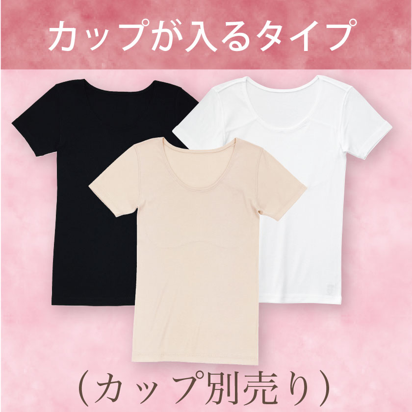 カップが入るすっきり半袖インナー 綿100%