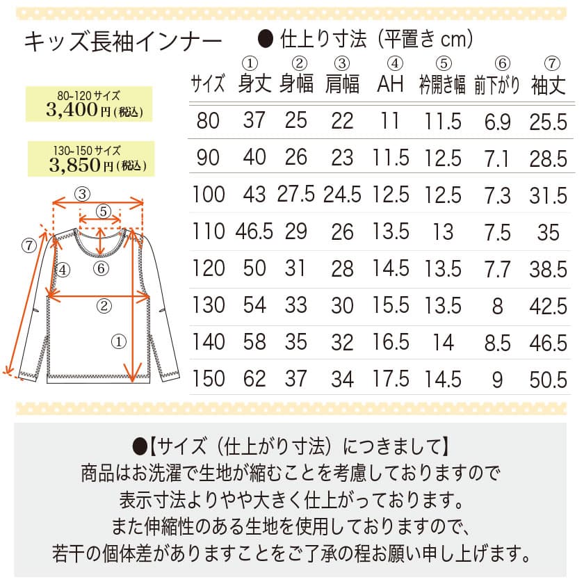『キッズ長袖インナー』 綿100%