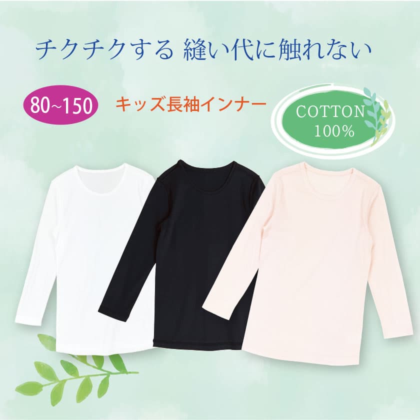 、しっとり柔らかな長袖インナーでお子様のデリケートなお肌をやさしくサポートします。
