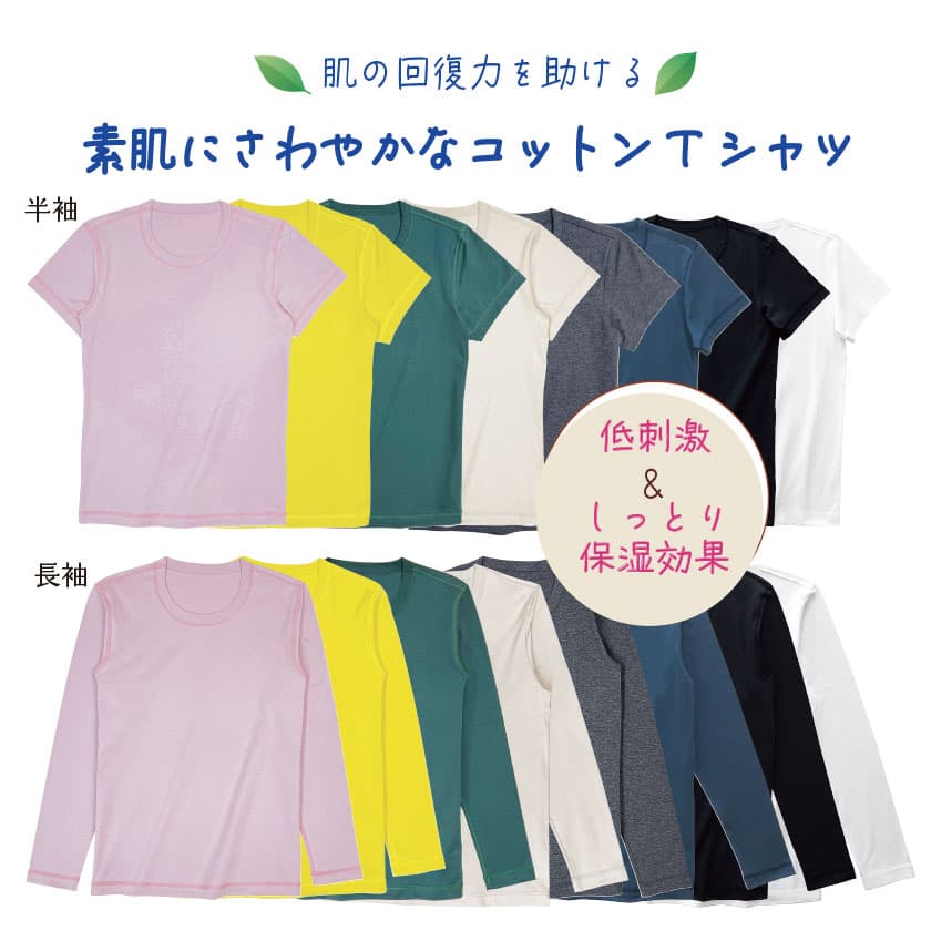 肌の回復力を助ける、素肌に爽やかなコットンTシャツで、敏感なお肌を守ります。