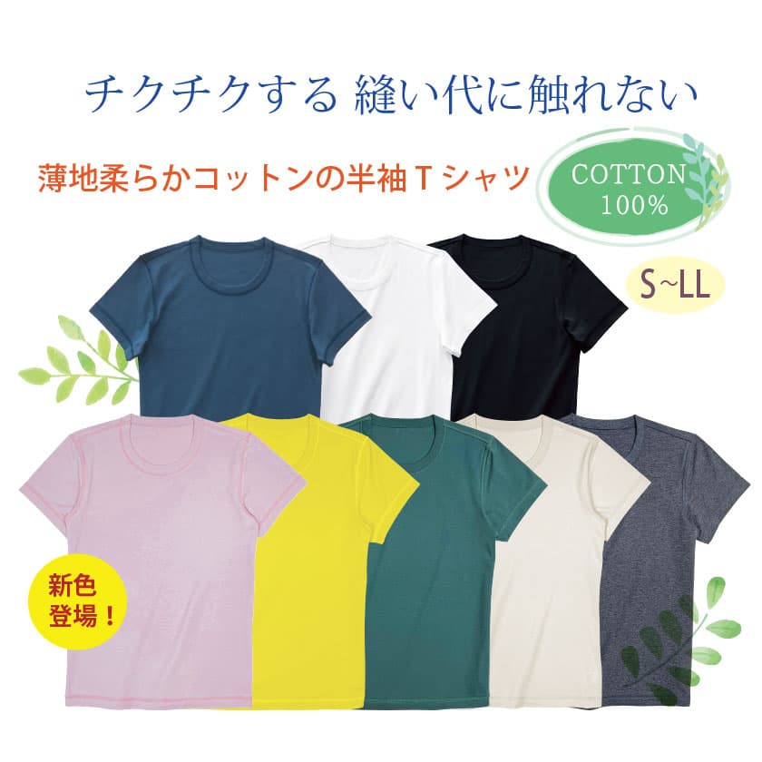肌に優しい『薄地柔らか半袖Tシャツ』 綿100%