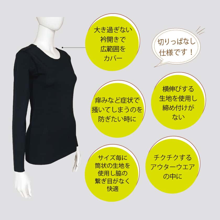 薬やクリームの後に着けると効果的♪チクチクするアウターウェアの中に便利な簡易的肌着です。