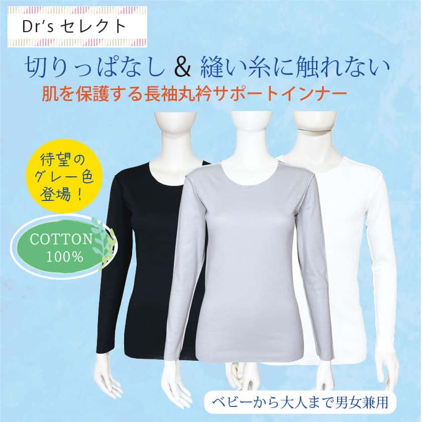 掻いた後の血や薬が肌着や服について洗ってもなかなか取れない、そんな時に簡易的なもので肌にやさしいものがあれば…、そんなお声と皮膚科の先生からもアドバイスを頂き、切りっぱなしの「サポートインナー」が生まれました。(コットンのみを使用し、切りっぱなし仕様ですので耐久性はやや低くなります。ご了承の程お願いいたします。)