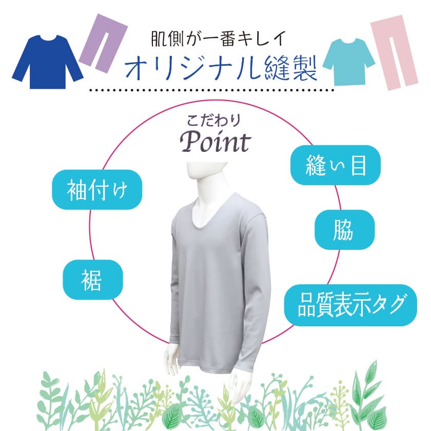 通常肌側にあるチクチク縫い目(縫い代)が肌に触れないオリジナルの安心縫製。