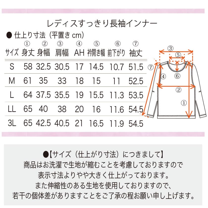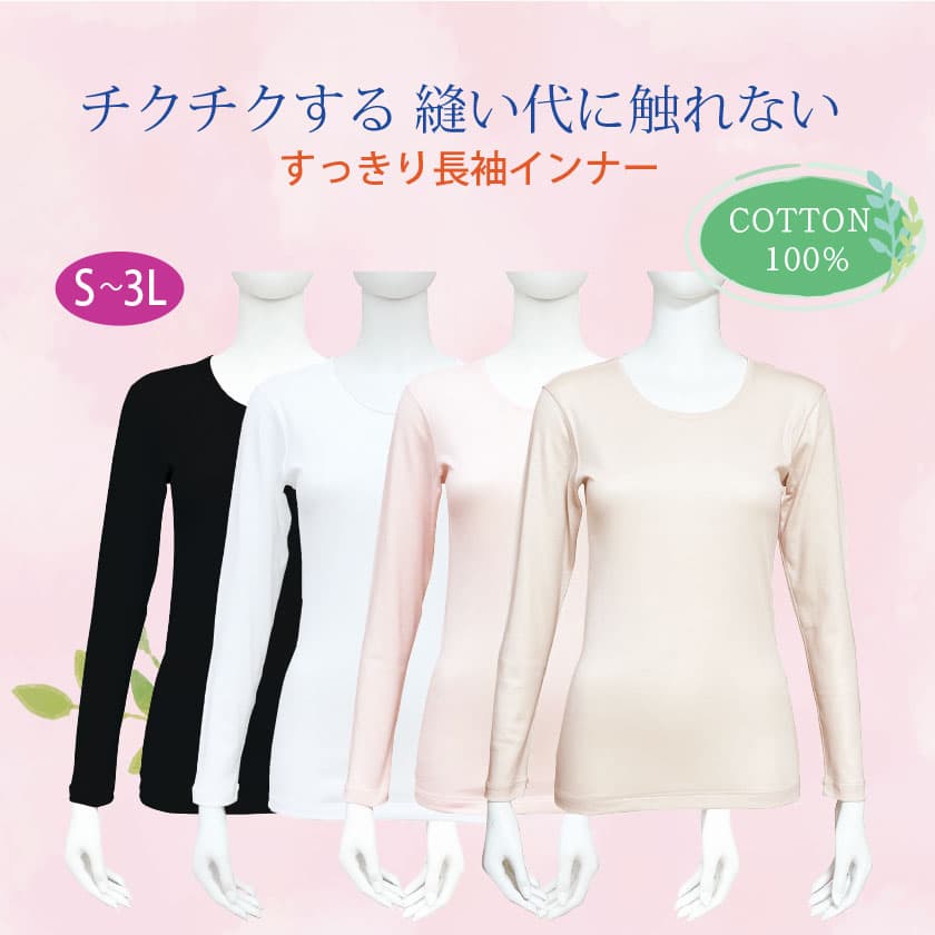 すっきり長袖インナー 綿100%