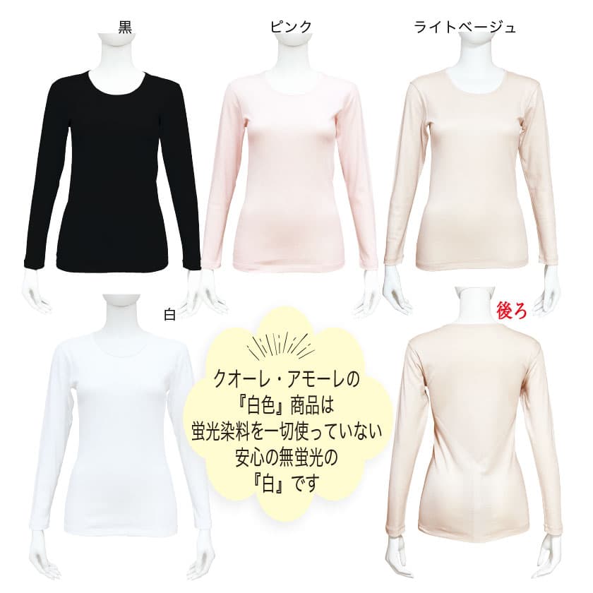 クオーレ・アモーレの『白色』商品は、蛍光染料を一切使用していない安心の無蛍光の『白』です。