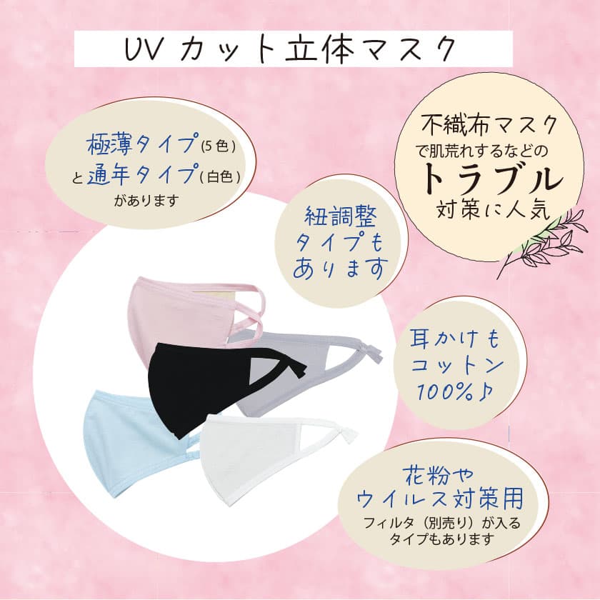 【極薄】フィルタが入るUVカット立体マスク(5色)はこちら