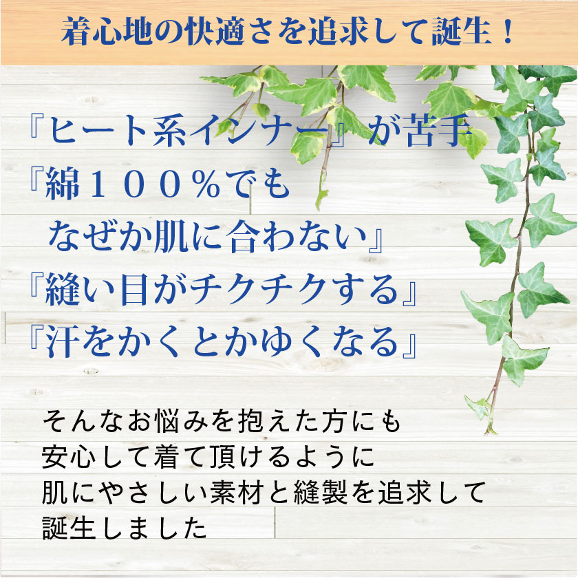そんなお悩みを抱えた方にも安心して着て頂けるように、肌にやさしい素材と縫製を追求して誕生しました。