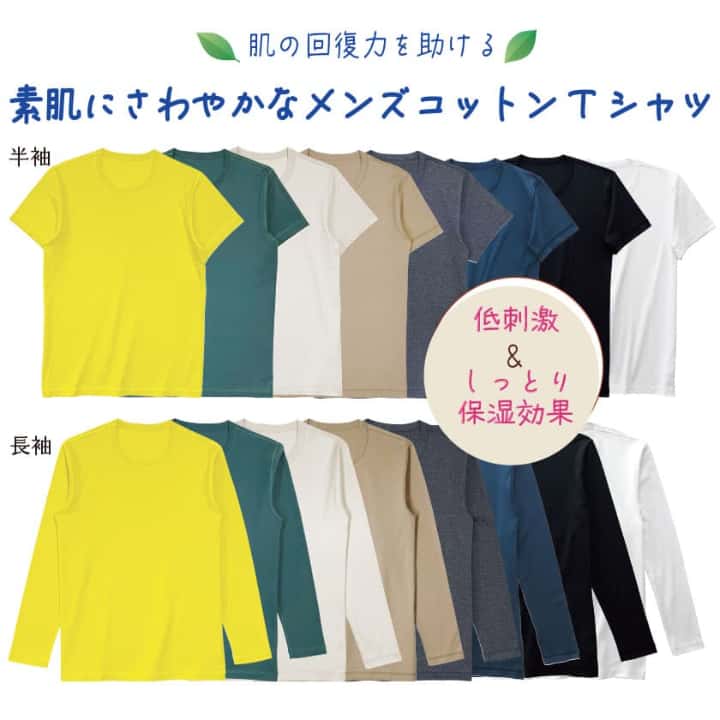 肌の回復力を助ける、素肌に爽やかなコットンTシャツで、敏感なお肌を守ります。
