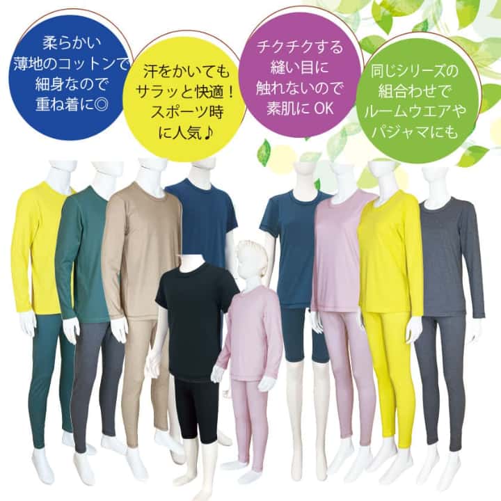 綿100%で吸放湿性があり汗をかいても肌環境を快適に保つため、季節の変わり目や日差しが強い屋外での活動に適しています。