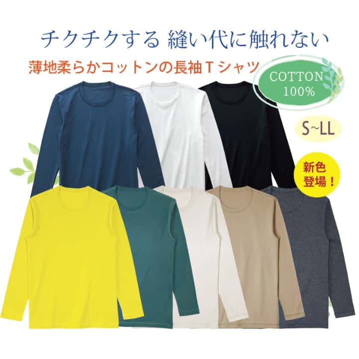 肌に優しい『薄地柔らかメンズ長袖Tシャツ』 綿100%