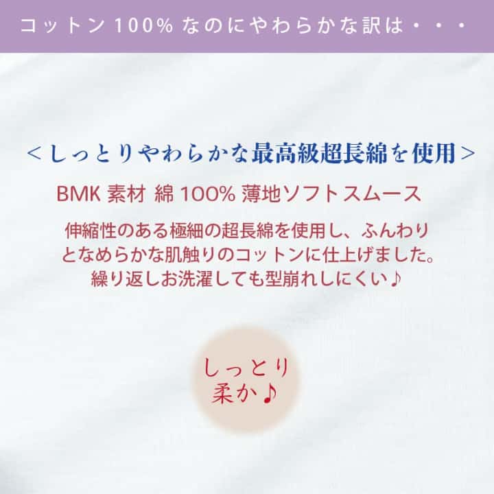 BMK超低刺激コットンは綿を異物と感じにくいため、肌への負担が少なく快適♪保湿効果が高く乾燥対策にも最適です!この素材は肌に優しい天然由来の有効成分と、コンタクトレンズのコーティングや人工血管にも使われる程の高い生体親和性と親水性を持つ成分素材を、ナノテクノロジーによって生地(繊維)に加工したものです。この素材は限りなく人の肌に近く、皮膚を保護して体内から水分などが失われることを防ぐバリア機能の回復効果があると言われています。また、超親水性、吸放湿性、高消臭性、帯電防止性などの昨日も併せ持っています。大学病院皮膚科での臨床試験において肌ケア素材として先生や患者さんから安全性、使用感と共に高い評価を頂いております。肌に優しい生地作りからデザイン、生産、ホルマリン検査に至るまで、全て日本国内で大切に作られています。