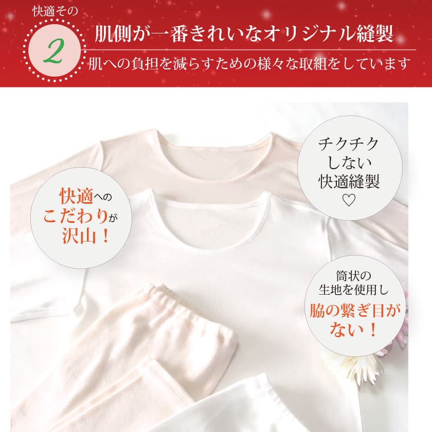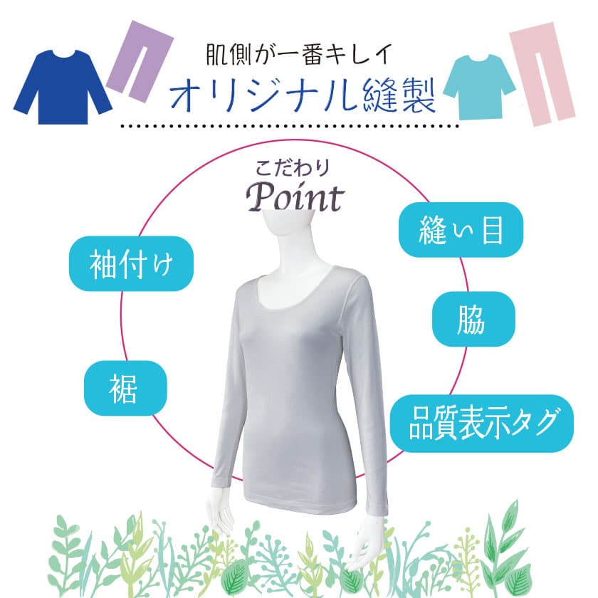 通常肌側にあるチクチク縫い目(縫い代)が肌に触れないオリジナルの安心縫製。
